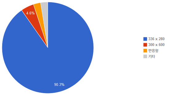 그 다음으로는 광고크기가 250 * 250, 728 * 90, 300 * 600이며 요즘 모바일에서 최적화 되도록 반응형 광고가 뒤를 이었구요..