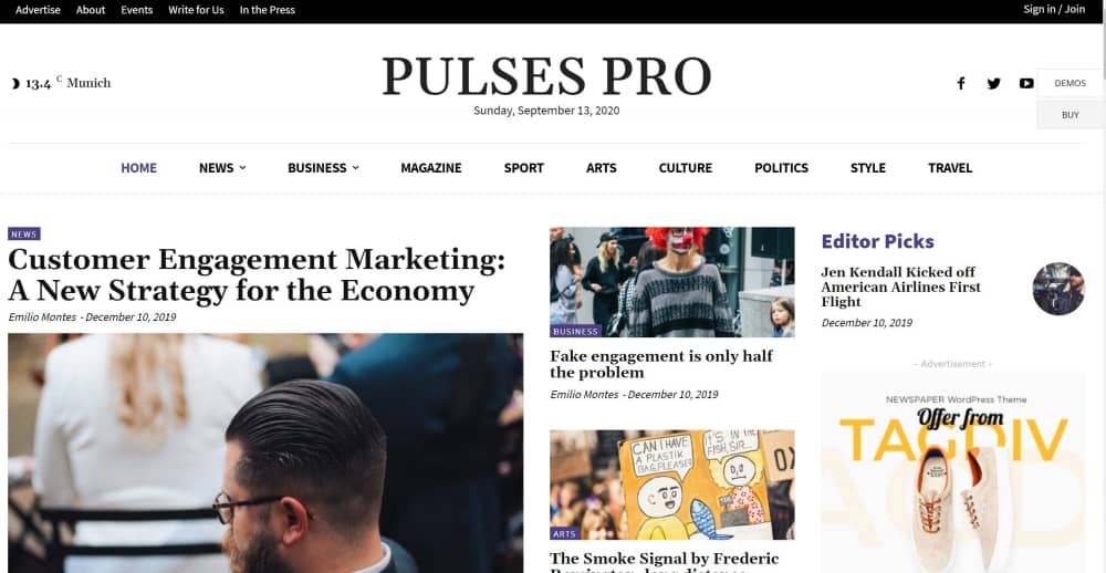 선택한 것이 바로 뉴스페이퍼 테마 PULSES PRO 데모였습니다.