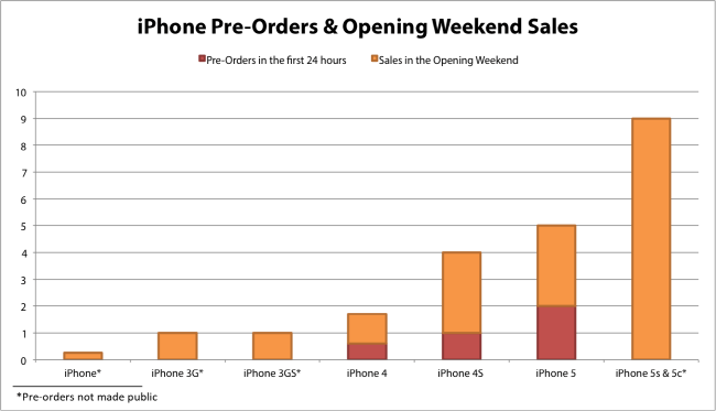 그런데 올해 아이폰5S, 아이폰5C를 내놓자 마자 9월 22일 기준으로 벌써 900만대를 넘어섰다고 하네요..