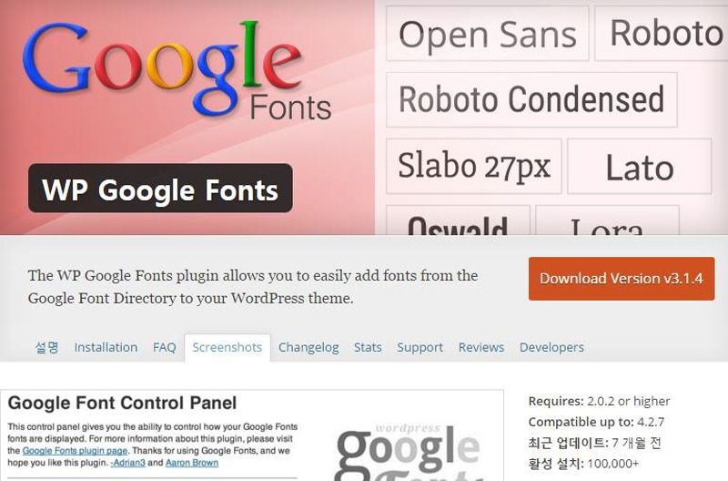 워드프레스에는 구글 폰트 관련한 플러그인이 따로 있군요. 나눔글꼴에 대해서만 관련된 플러그인이 아닐까 추측했거든요.