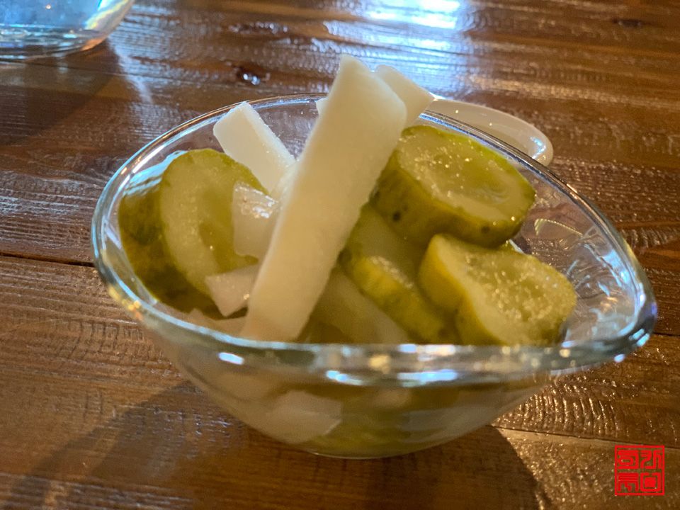제일 먼저 나오는 것이 화덕에서 구운 식전빵과 피클, 그리고 벌꿀 이었습니다.