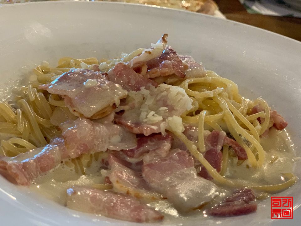 식전빵을 먹는 도중에 먼저 제가 고른 까르보나라 파스타가 나왔습니다.