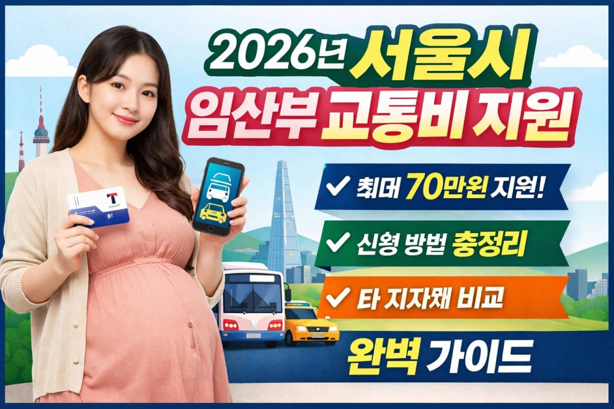 2026년 서울시 임산부 교통비 지원은 최대 70만 원까지 제공되는 대표적인 임산부 복지 정책입니다. 임신 3개월 이후부터 신청 가능하며, 교통카드 형태로 지급되어 대중교통과 택시에 사용할 수 있습니다. 타 지자체 대비 높은 지원금으로 반드시 신청해야 하는 필수 혜택입니다.
