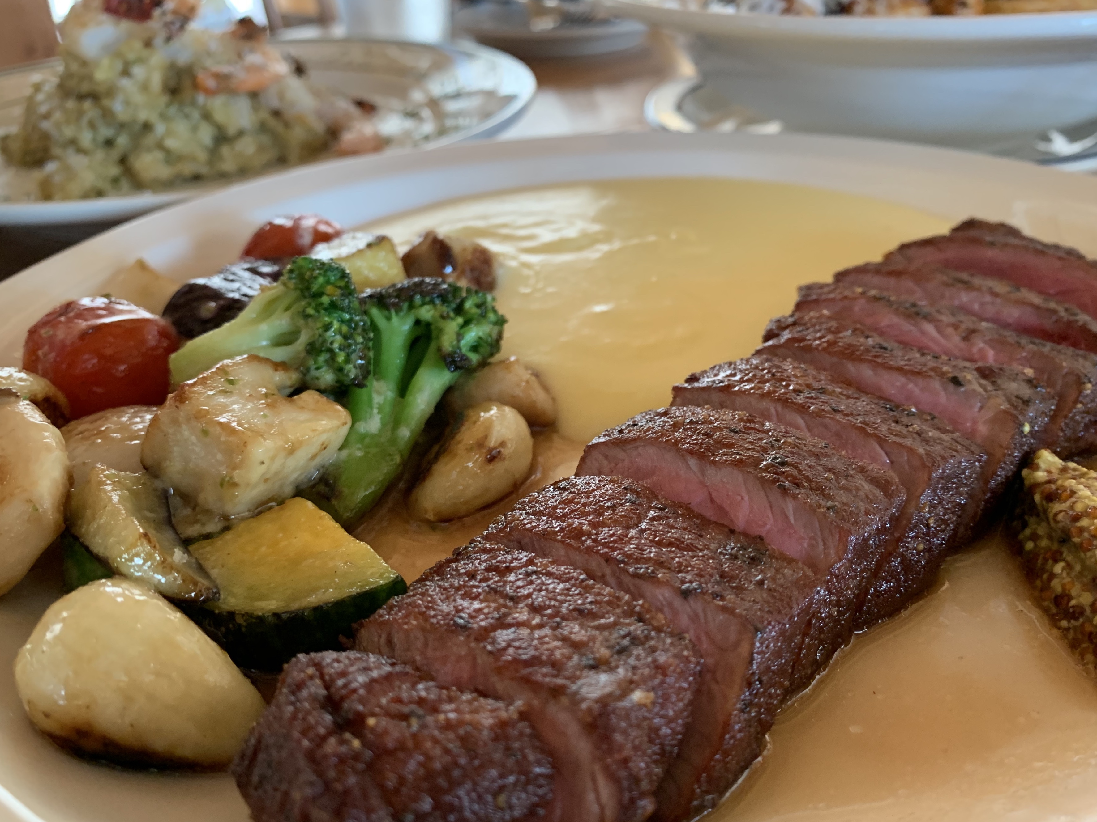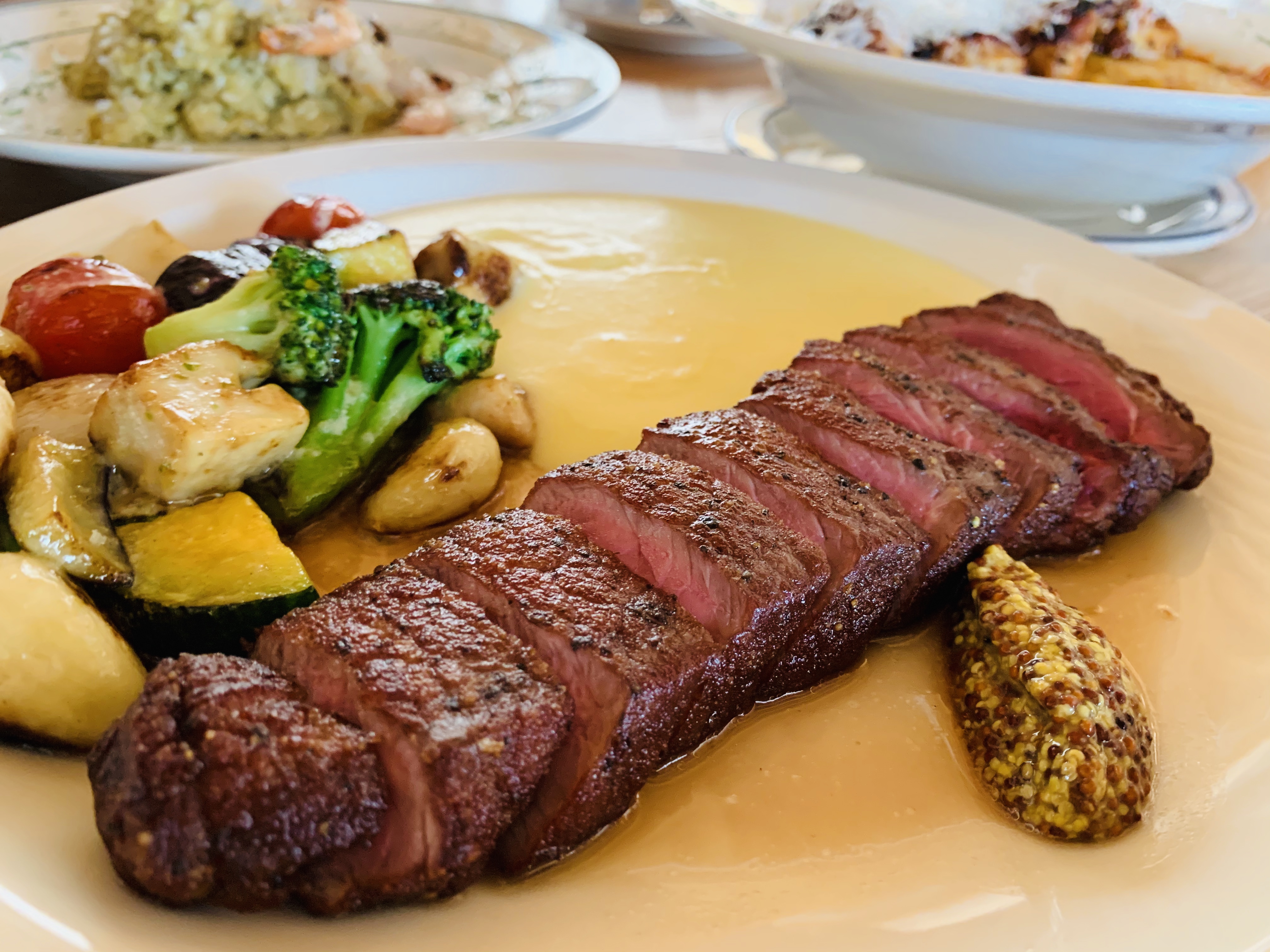 스테이크가 미디움으로 있습니다..나이가 많으신 분은 바싹 구워야 먹어야 되는 것 같아요..그러나 여기에 오시는 분은 연인들이기 때문에 미디움 음식을 좋아하시는 것 같아요..