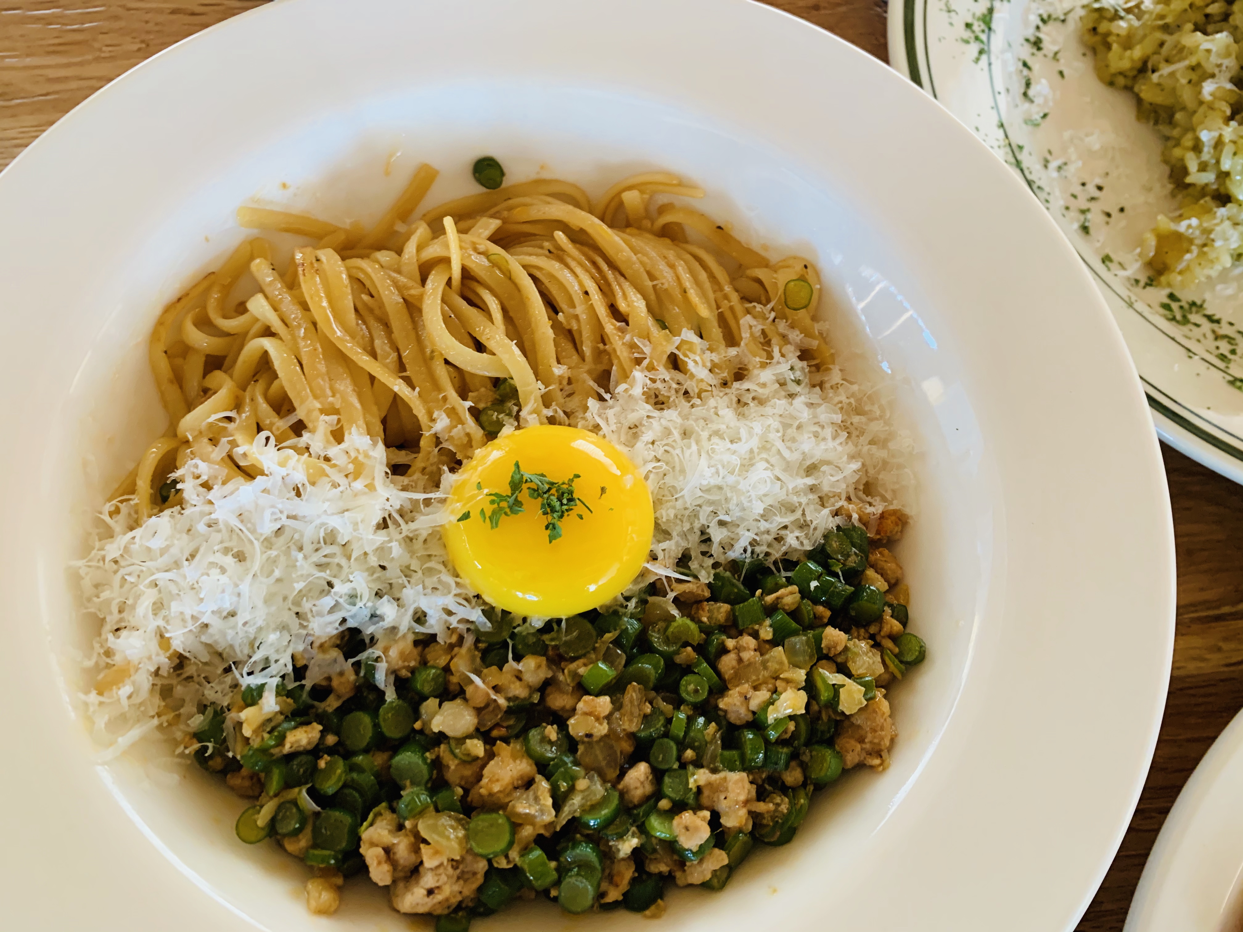 파스타이고 주재료는 마늘입니다… 마늘로 해서 마늘 냄새가 나는 줄 알았는데 전혀 나지가 않습니다..매콤한 치킨 토마토와 함께 먹었는데 색다른 맛을 주네요.. 그리고 위에 달걀을 넣어 더욱더 포인트를 주었습니다. 스파게티와 달걀, 그리고 마늘을 섞어 먹으면 이것 또한 눈과 입이 호강합니다.. 그리고 스파케티를 좋아하시는 분이라면 꼭~~ 시켜 드세요..!!