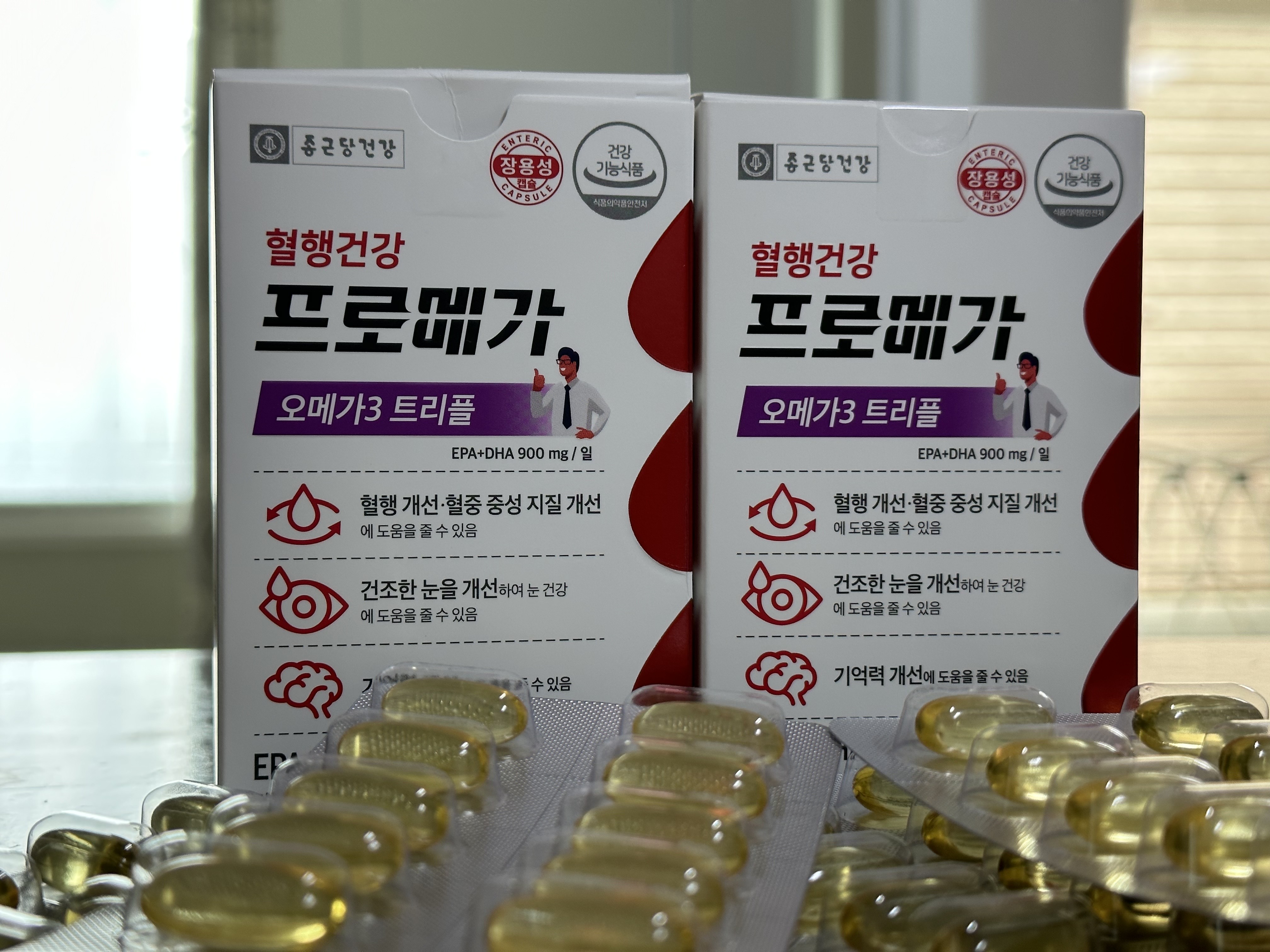 오메가3를 만든 제약사도 많지만 제가 선택한 곳은 종근당 프로메가 오메가3 트리플 입니다..