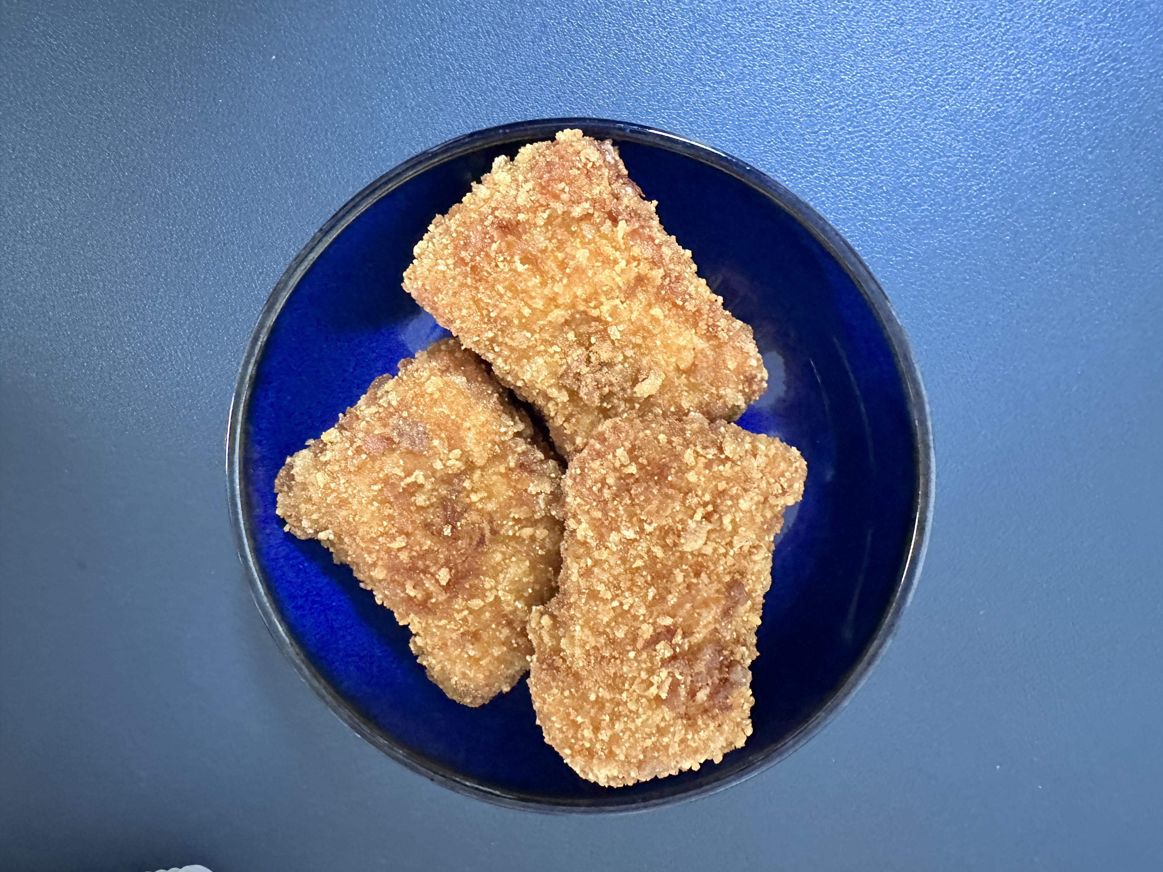 이번 치킨은 순살입니다.. 뼈 치킨은 없는 것 같습니다. 작은 접시에 3개를 넣고 먹어 보았습니다.