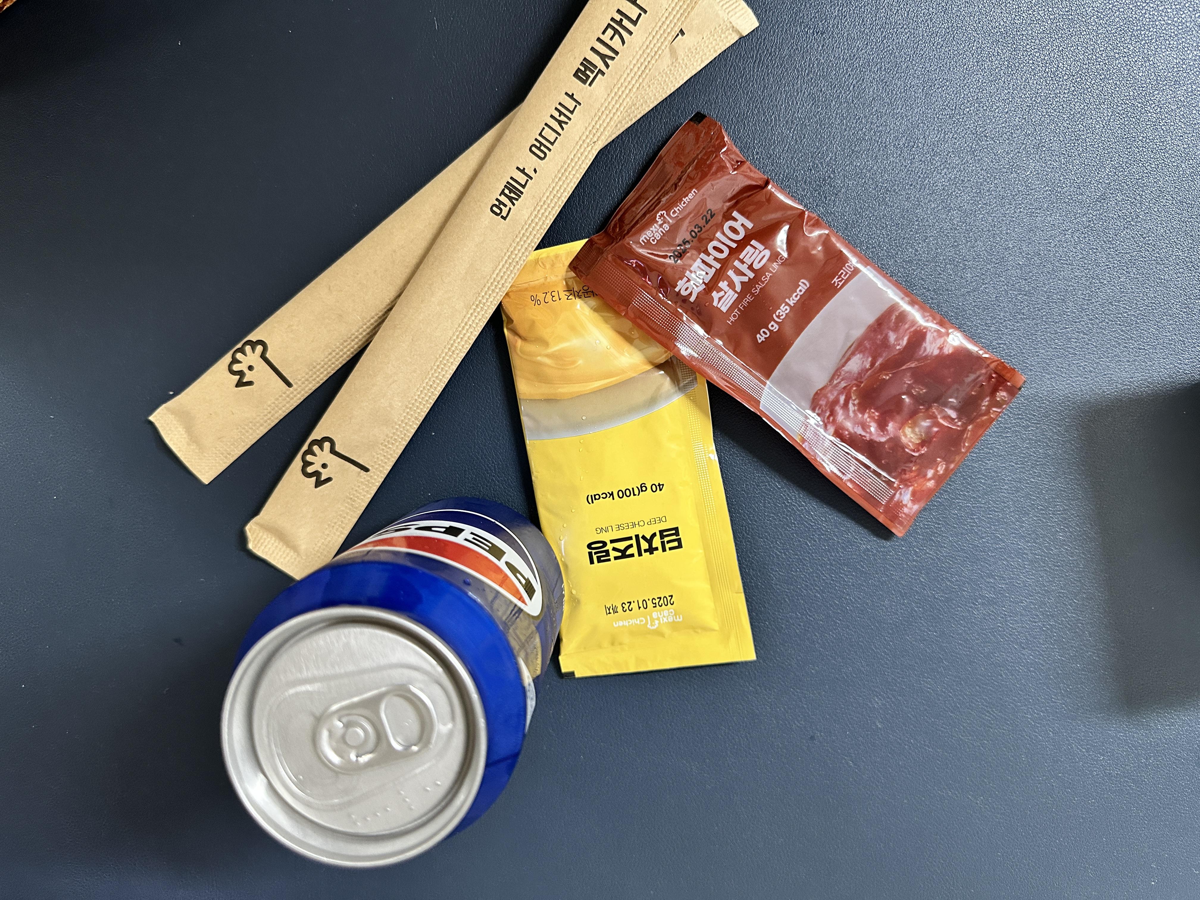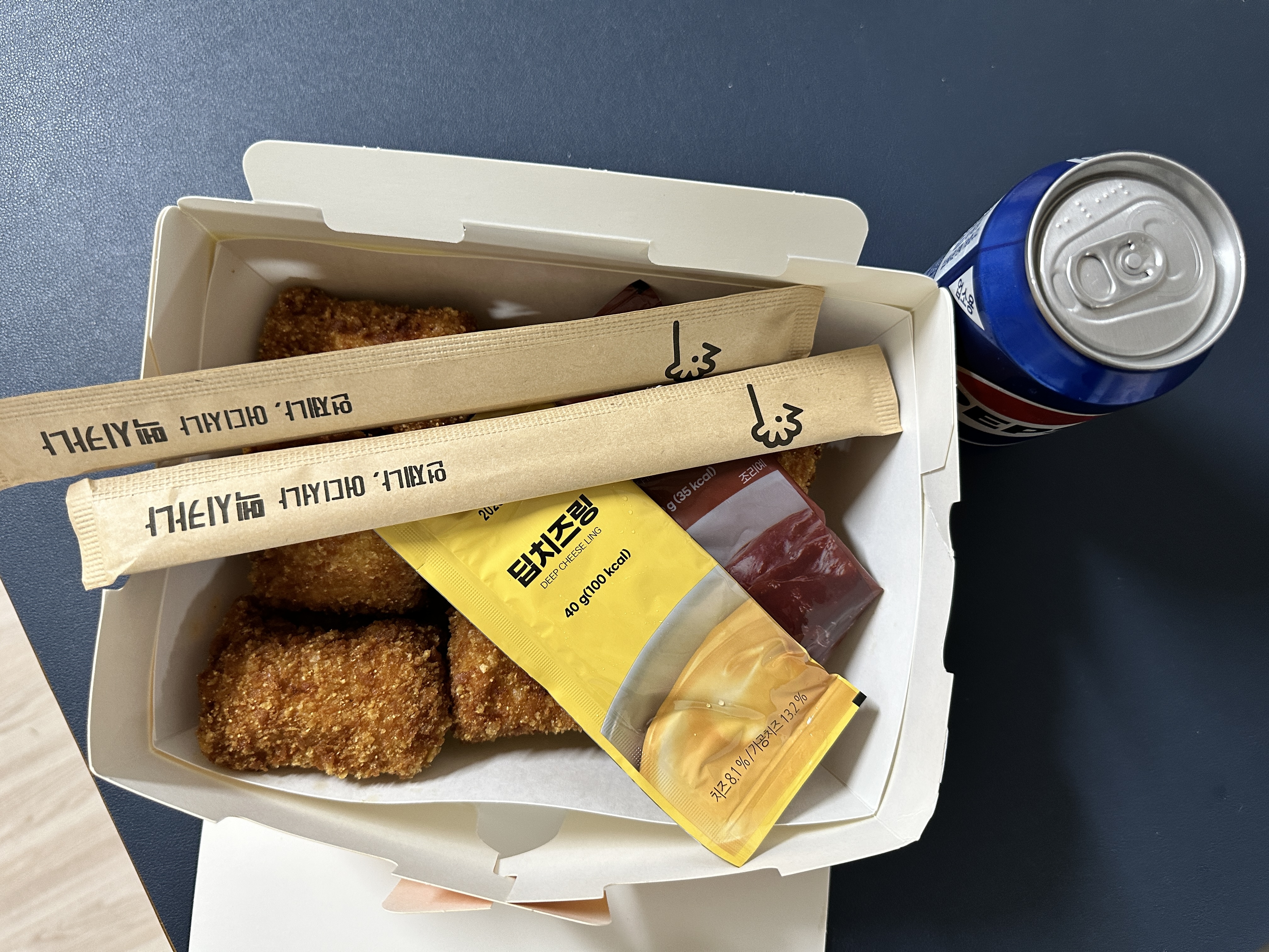 열어보니 치필링 치킨과 딥치즈링, 핫파이어살라링 그리고 젓가락 2개, 그리고 무와 마지막으로 치킨에는 없어서는 안될 콜라 요렇게 들었네요..