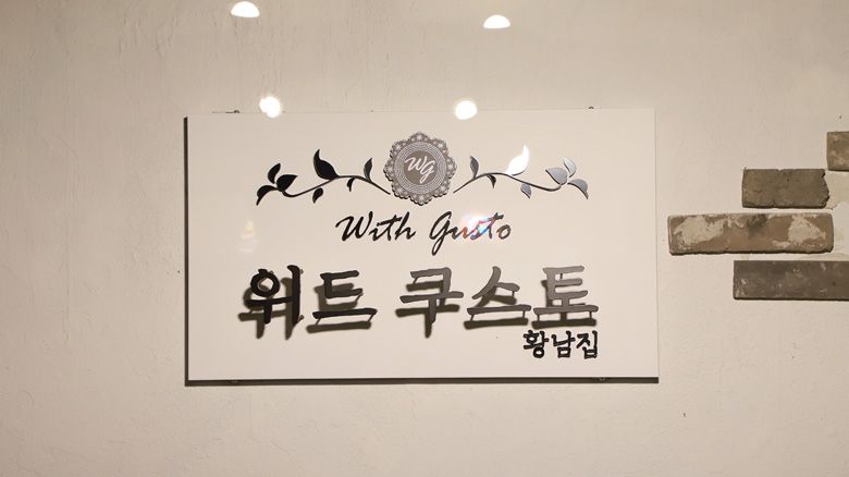 입구에 아름다운 위드구스토 간판이 우리를 반겨줍니다.