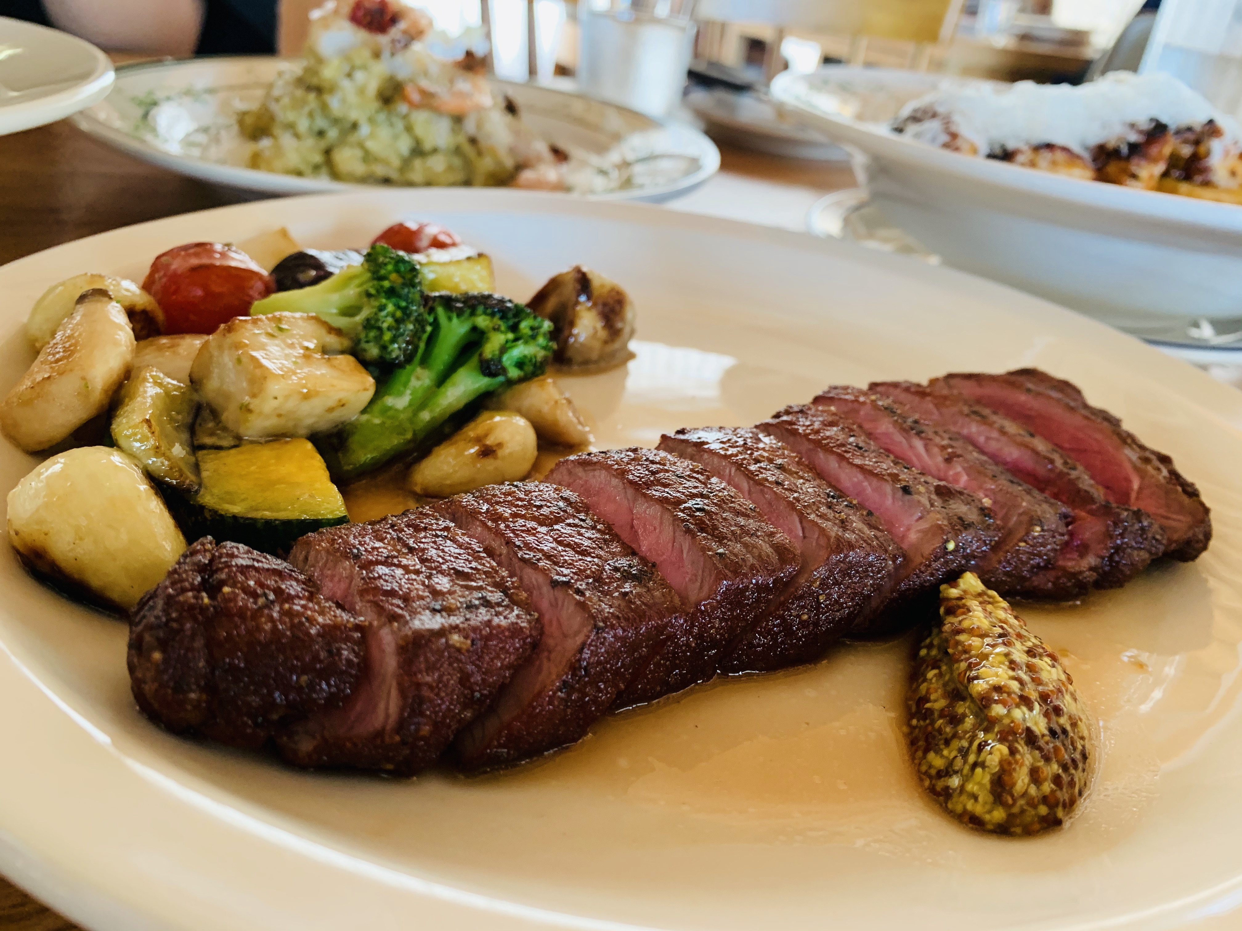 스테이크가 미디움으로 있습니다..나이가 많으신 분은 바싹 구워야 먹어야 되는 것 같아요..그러나 여기에 오시는 분은 연인들이기 때문에 미디움 음식을 좋아하시는 것 같아요..