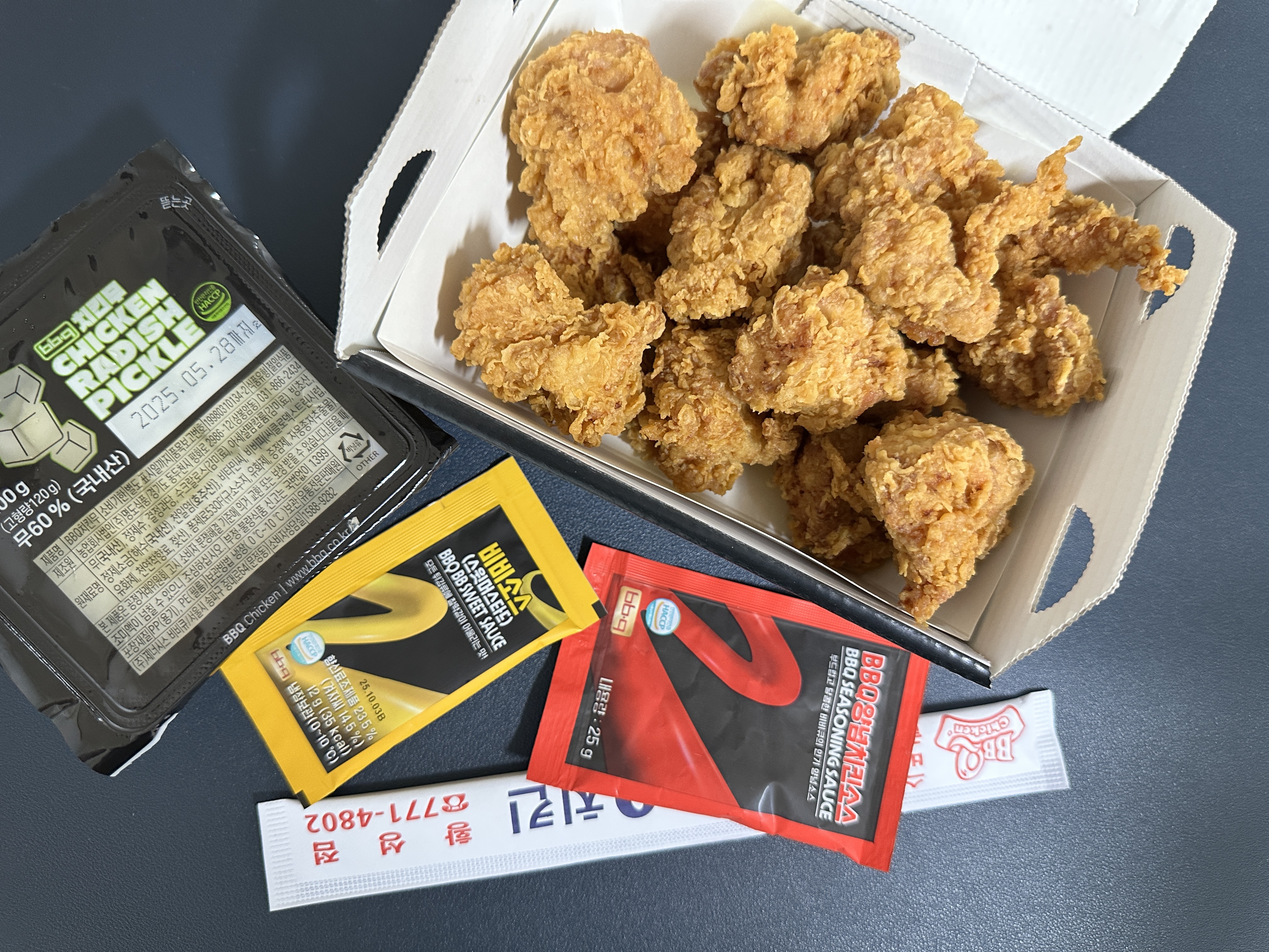 박스를 여는 순간 고소하고 바삭한 향이 퍼졌습니다. 비비큐 특유의 튀김 향은 먹기 전부터 입맛을 자극하죠.