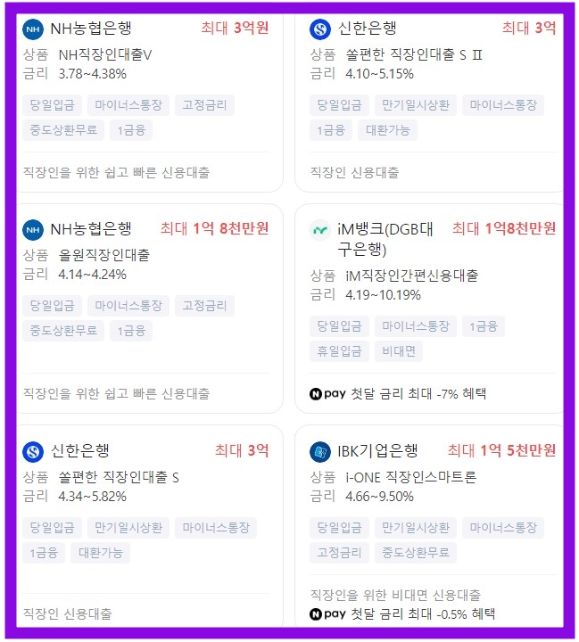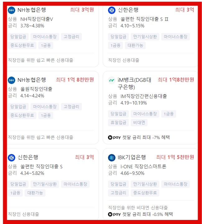 금리가 NH농협이 3.78로 가장 낮으며 iM뱅크(DGB대구은행)이 8.26에서 최대 13.87로 가장 높은 것으로 파악이 되고 있습니다.
