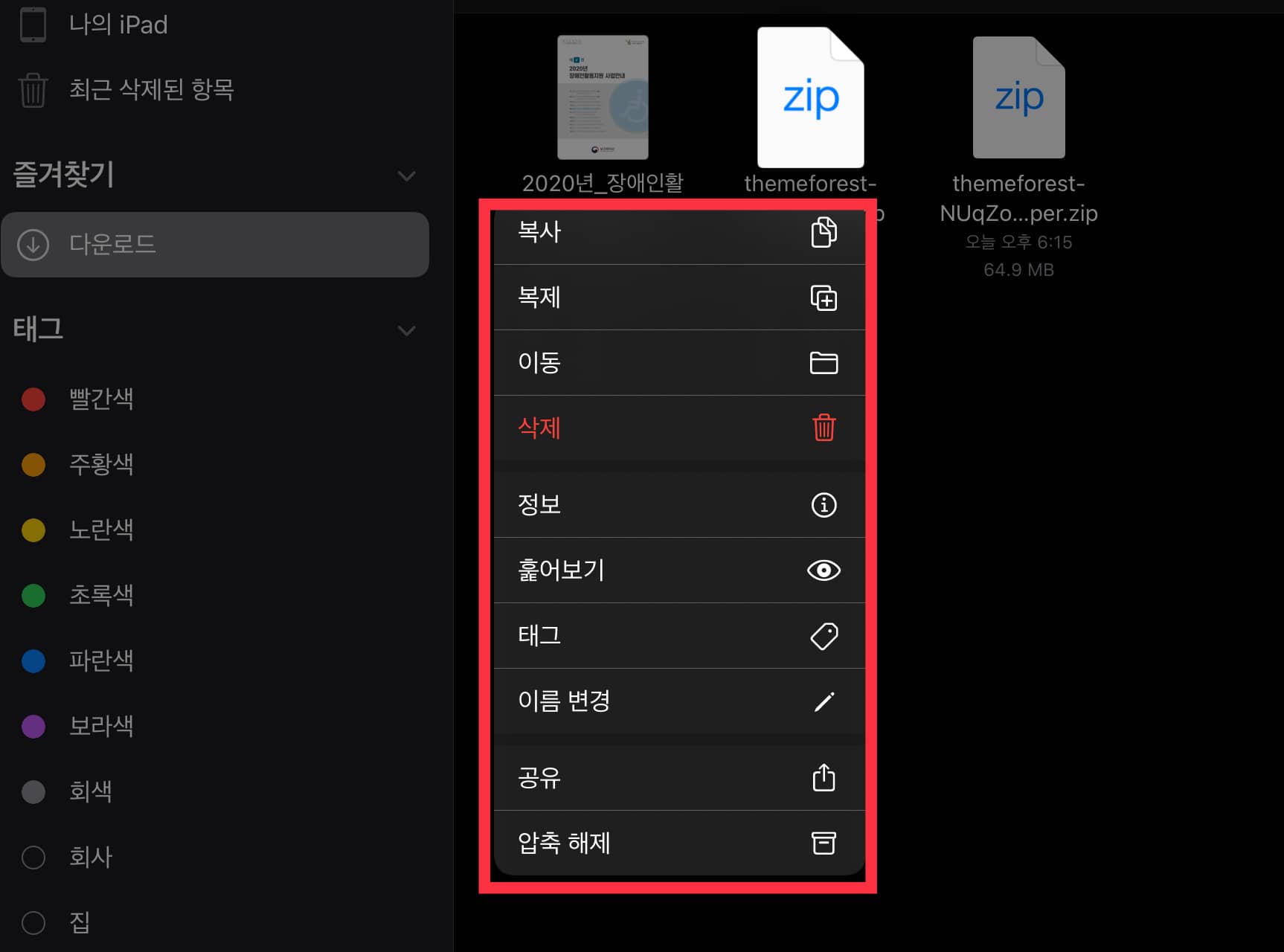 아이패드 압축 파일 풀기
