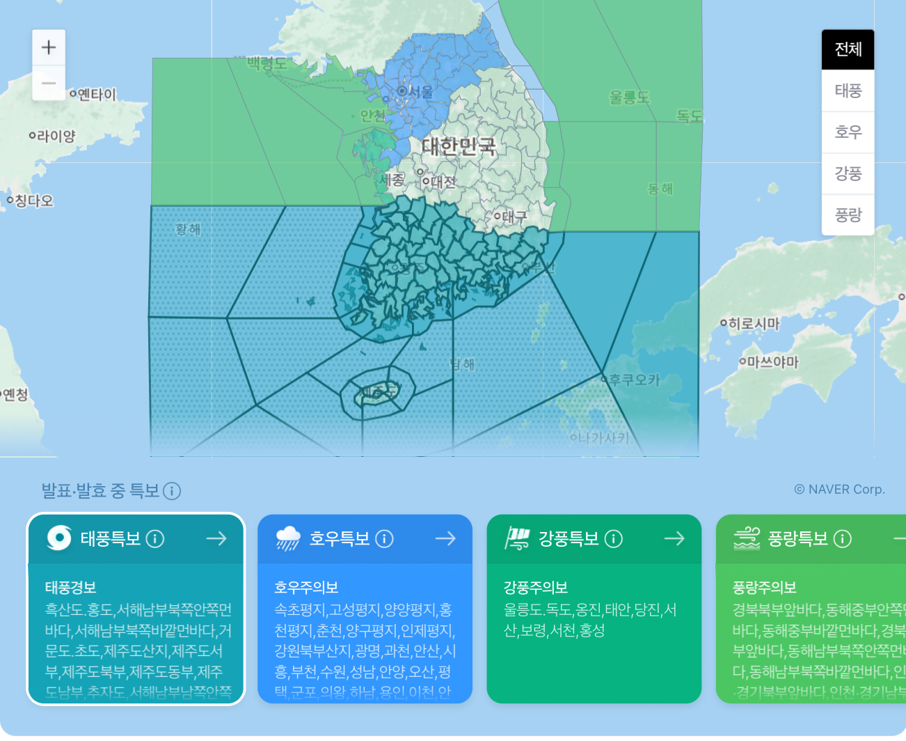 이번 태풍은 많은 비와 강력한 바람을 동반합니다.