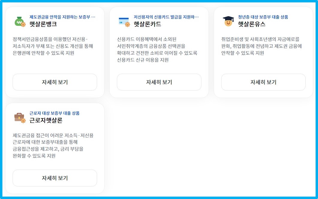 - 대출대상 : 신용등급 낮은 서민 및 경제적 어려움이 있는 가정