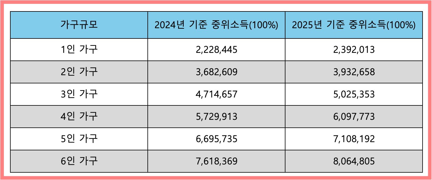 2025년 기초생활 수급자 소득에 따른 선정기준 안내