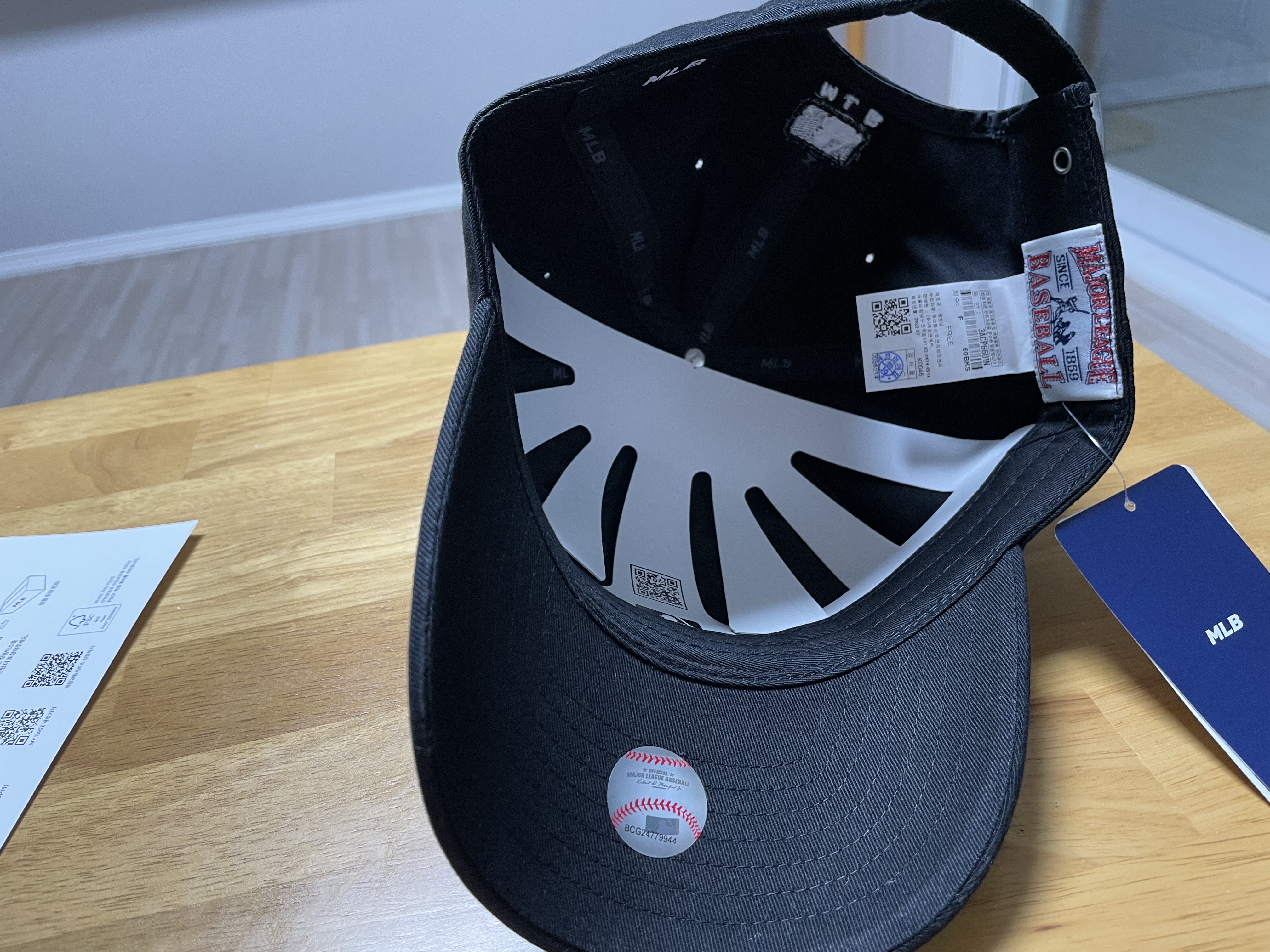 안쪽에는 큐알코드와 함께 MLB 로고 또한 접혀지지 않도록 싸여져 있여요…..^^ 아주 세심하게 되어 있는 것을 보실 수 있습니다..