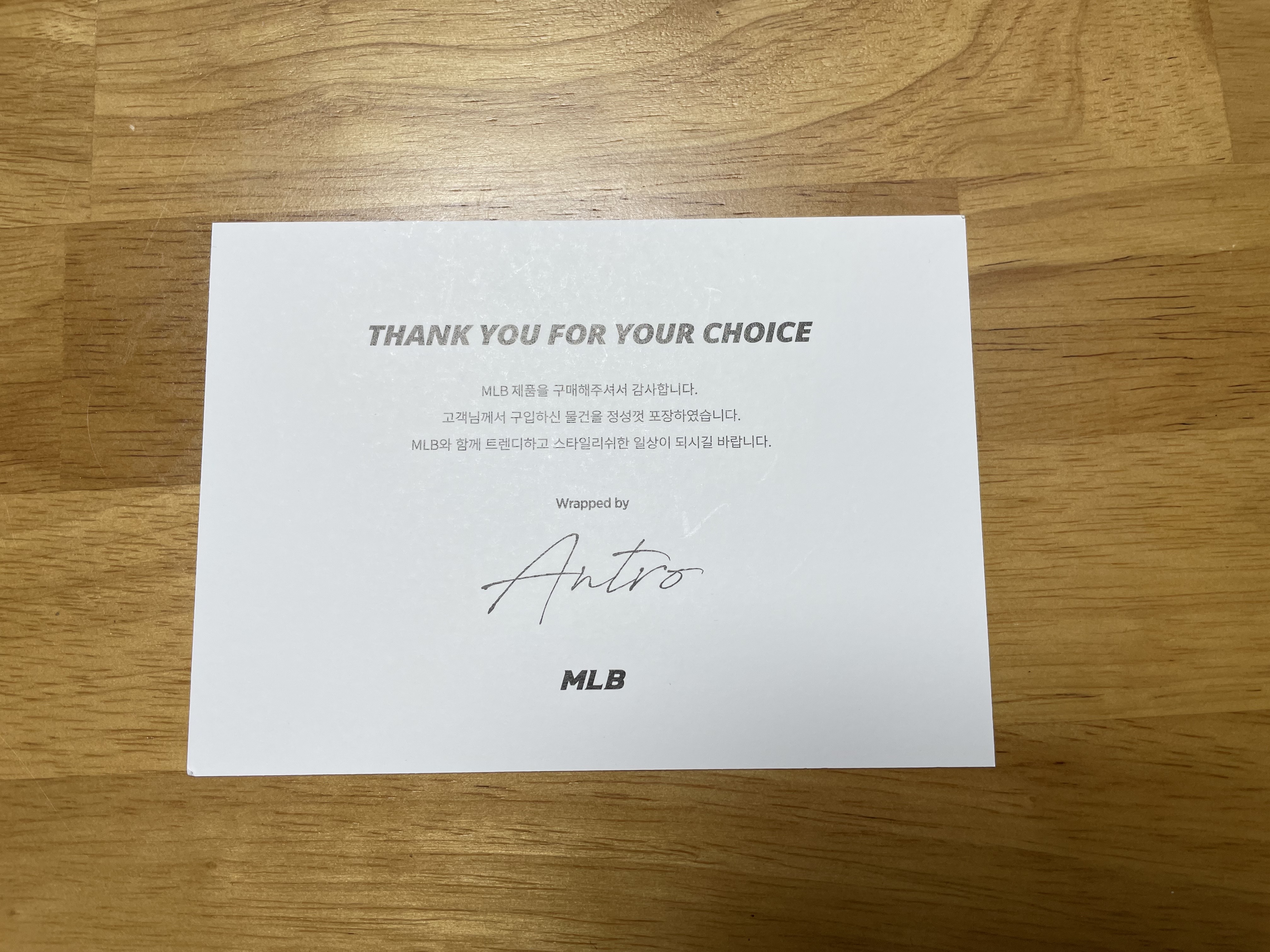 밑에 교환/반품 안내서와 MLB 모자 루키 언스트럭쳐 볼랩 을 구입해 주셨다고 감사의 글도 써여져 있어요..